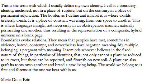 Léonora Miano, “Habiter la frontière”, Habiter la frontière, Paris: L’Arche Editeur, 2012.