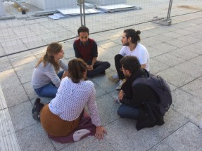 In the spirit of translation that also indicates mouvement, after our introductory remarks, we chose to leave the classroom to form a cercle on the terrace, with a wonderful orange background.