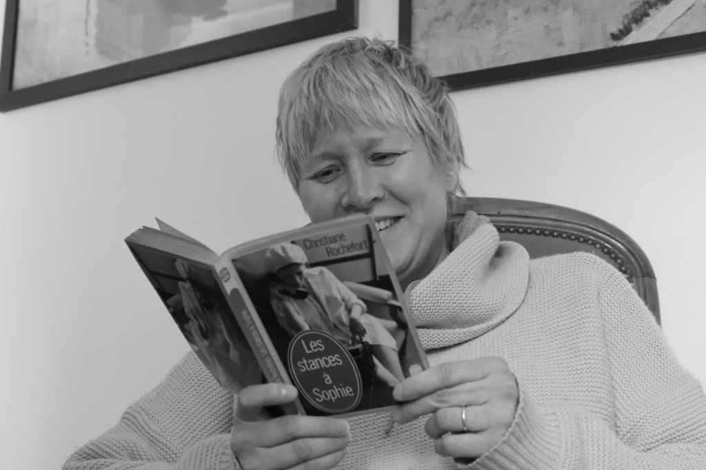 Figure 6: Heta Rundgren lisant Christiane Rochefort, Les Stances à Sophie, Livre de poche (1992) / ©Salima Amari