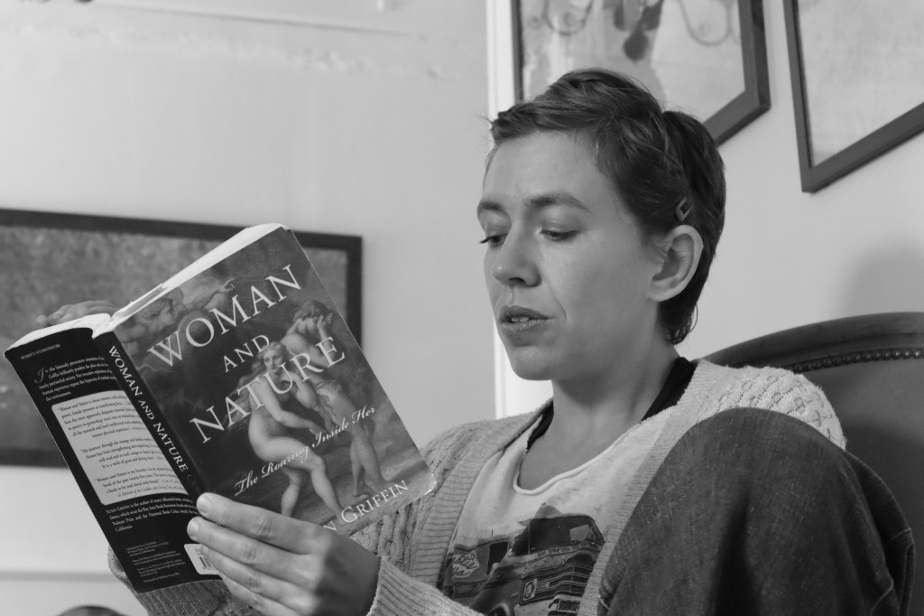 Figure 4: Jamie Herd lisant Susan Griffin, Woman and Nature, Counterpoint (2000) / ©Salima Amari