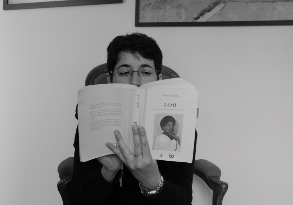 Figure 1 : Salima Amari lisant Audre Lorde, Zami, Trois (1998) / ©Salima Amari (Autoportrait)