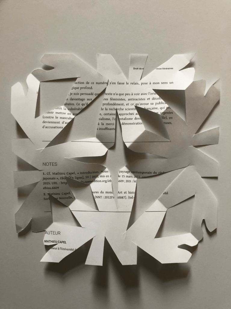 - Suto, Y. (2025). « Derrière le miroir, un dossier d’Ebisu sur le cinéma japonais », Itinéraires [En ligne], 2023-2. https://doi.org/10.4000/13fnf